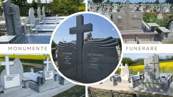 Vă oferim monumente funerare, cavouri, capace și troițe realizate cu seriozitate și respect. Folosim granit, marmură și mozaic pentru durabilitate și estetică. Servicii incluse: gravură, inscripționări și fotoceramică, garanție 5 ani.