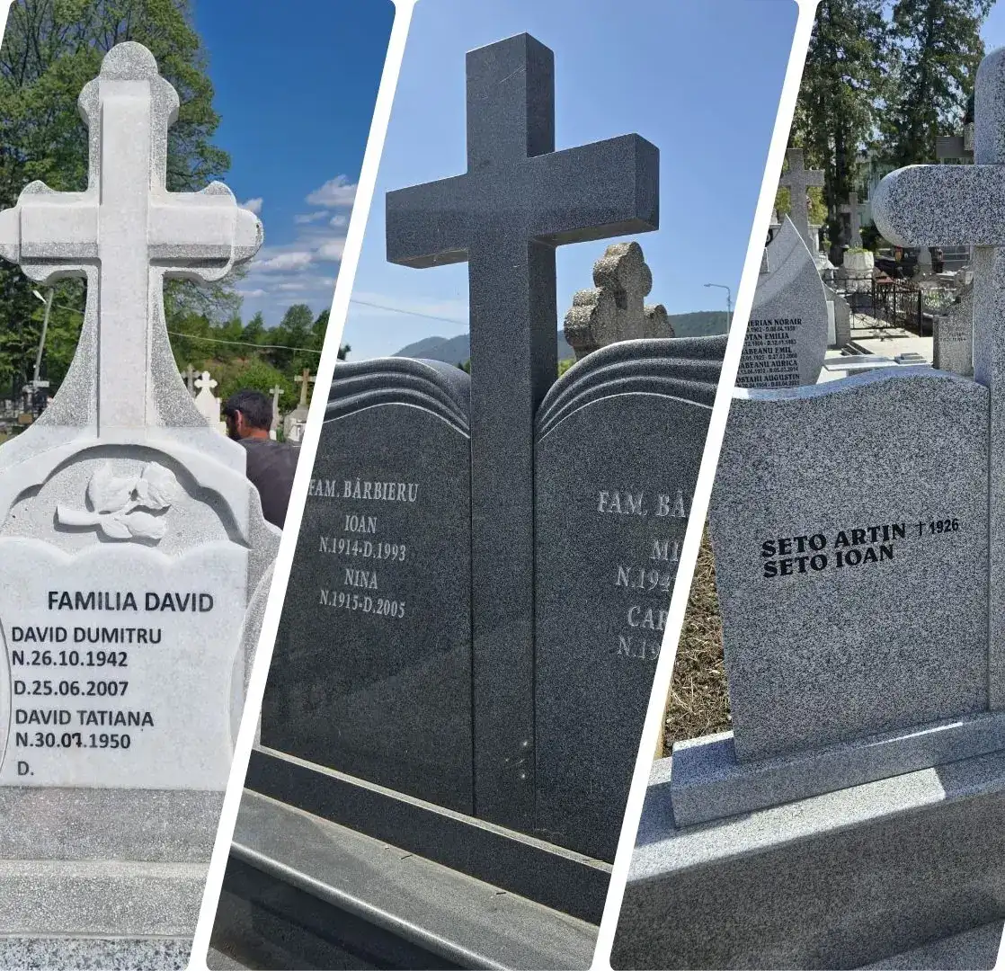 Echipa noastră din Bacău construiește monumente funerare și lucrări personalizate de peste 10 ani. Executăm cavouri, cripte, troițe și capace de morminte, adaptate cerințelor fiecărei familii și tradițiilor religioase.