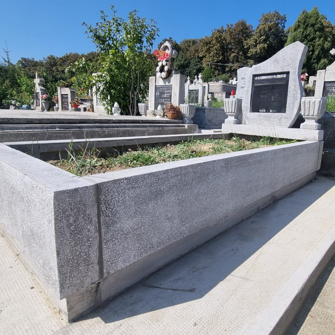 Fiecare lucrare este executată cu precizie, de la fundație și până la detaliile finale. Oferim servicii complete pentru monumente funerare: proiectare, turnare cadre, capace și gravuri personalizate.