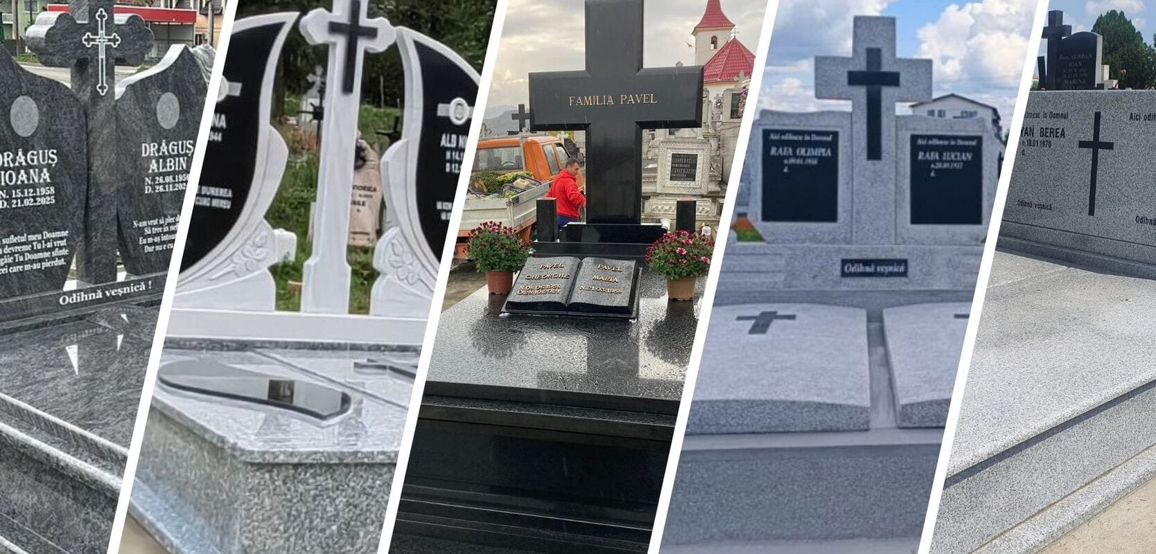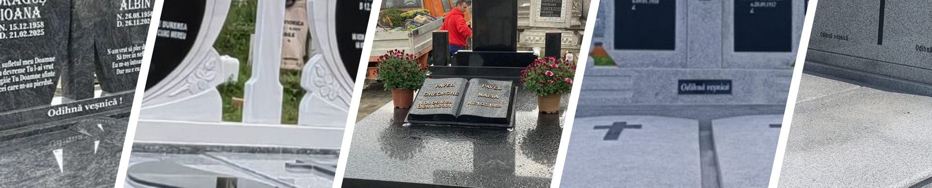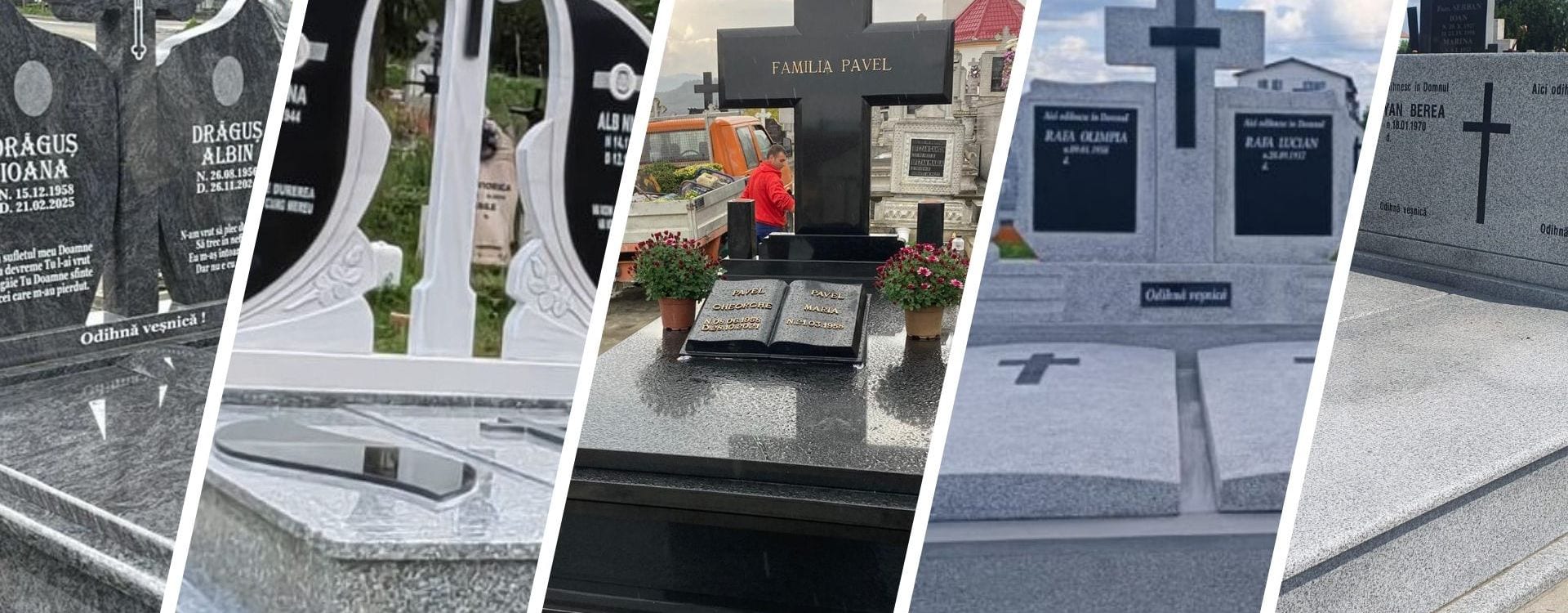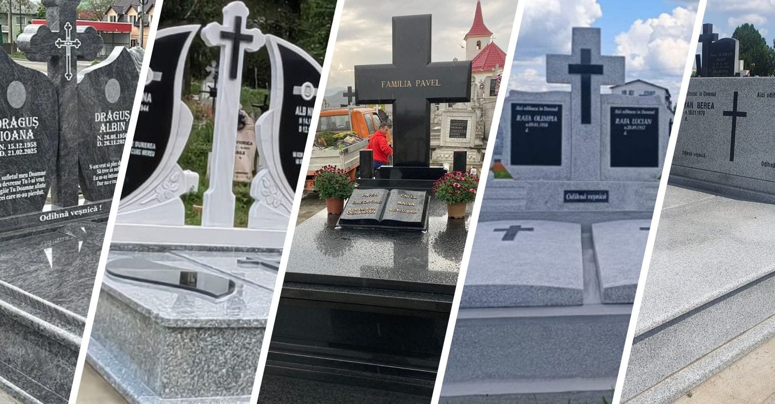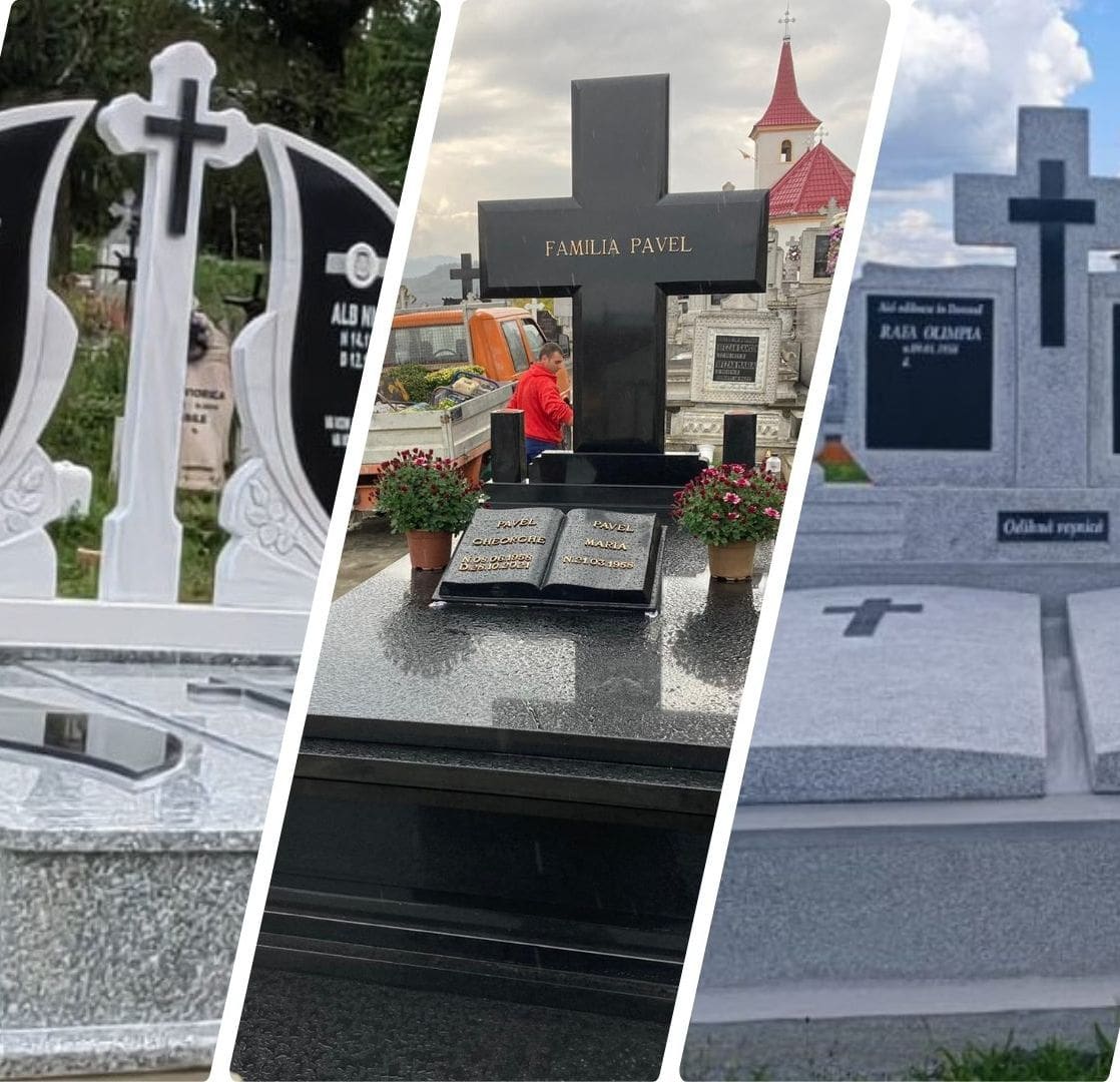 Executăm la comandă lucrări funerare, cruci și monumente din piatră naturală. Serviciile noastre includ transportul, montajul și finisajele necesare fiecărei construcții.